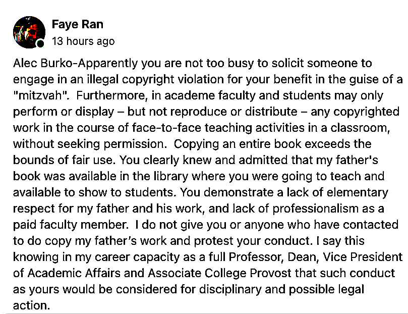 It was pleasant to receive some generous personal messages from conference participants. It was less pleasant to hear that some explained why our communications must remain private, tantamount to adhering in public to the called-for boycotts and excommunication of colleagues that are necessary for brownie points for the gravy train of junkets, medals, honors, translations, grants and photo-ops with the great and mighty. The surprise and pain are somewhat amplified by the defamatory efforts coming on the heels of (and at times with parallel content) the parallel campaign of defamation and personal destruction emanating from far-right and neo-Nazi elements over the years.