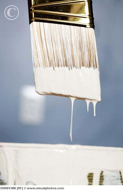 Paintbrush with white paint dripping
