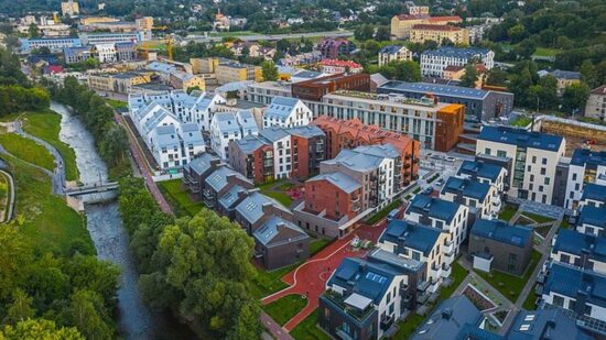 Claims by former City of Vilnius mayor, Remigijus Šimašius, of an exemplar in urban planning might be accurate in terms of architecture, landscaping, public amenity, and construction quality, but it is unclear whether long-term environmental issues, including potential for catastrophic flooding in the valley arising from future extreme weather events associated with changing climatic conditions, were considered by the municipality. It is somewhat ironic that Šimašius decries the Bauhaus architecture of the Soviets, yet the new buildings in Paupys are essentially steel and concrete structures, with their aesthetics stemming from creative use of external cosmetics, akin to many of its residents and the more flamboyant among local visitors. Of course, internally, these ~USD$1M medium density dwellings are luxurious in comparison to past pilkas (grey) Soviet austerity in prescribed daugiabučiai (apartment block) design.