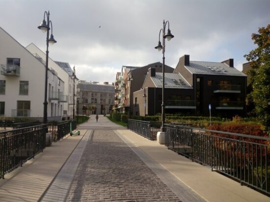 Over the past decade, the valley has been transformed into the now gentrified Paupys, emblematic of a contemporary renaissance in and around Vilnius, as increasing numbers of young, upwardly mobile, professionals continue to gravitate from the regional cities and countryside to the diesel and dust of the wealthier iconic capital. Užupis (a Lithuanian translation of Zaretsha, the earlier Slavic name, meaning “across the river”) has intrinsically transformed, but has superficially, retained the persona of a Bohemian enclave of creatives and hippies, squatting in architecturally attractive heritage buildings that had long fallen into disrepair replete with a characteristic dankness from decay. Rising property values accompanied by the prospects of expensive renovation costs, have created an apparent urban spillover as new contemporary architectural construction has proceeded apace in the adjacent valley of “Paplauja”.