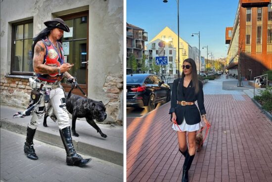 Eccentricity meets chic: the image of the gentleman in the pirate costume walking his didelis slobbering Italian Cane Corso pet past ‘Lucille’s Blues Bar’ in Rūdninkų 20 g. in the Senamiestis was sourced from here. The image of the mažas fluffy doodle dutifully following its model mistress westwards along Aukštaičių gatvė, Paupys, is from here.