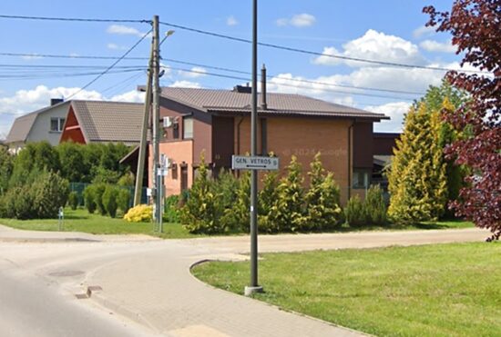 Residential street ‘GEN. VETROS g.’ in the Kaunas suburb of Aleksotas named after the infamous Jonas Noreika AKA General “Vetra” (Storm) of the LAF, who was allegedly responsible for internment and extermination of 15,000 Jews, (Source: Google Maps Street View). Jews from the Kovno Ghetto were used as forced labor at the Aleksotas Airfield.