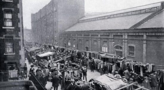 “From 1882, a wave of Jewish immigrants fleeing persecution in eastern Europe settled in the area. The chapels, which had previously served the Huguenot community, were adapted as synagogues. Many Jewish relief societies were founded to aid the poor. Jewish immigrants entered the local garment industry and maintained the traditions of the market.”