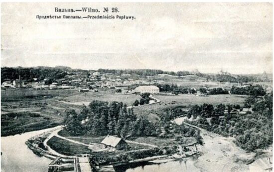 Crossing a wide contemporary footbridge, I enter the former industrial suburb now known as Paupys, situated on the left bank of the Vilnia. During the interwar period many Jewish artisans plied their various trades to fabricate and merchandise useful goods under the governance of the Polish Wilno Voivodeship (1920–1939), and the area with its canals and islands, long since gone, provided respite from the travails of daily grind with taverns and cheap brothels. This valley of toil and leisure came to an abrupt end with the Soviets marching in during September 1939, following the dismemberment of Poland, and temporarily gifting its administration (a month later) to the Republic of Lithuania (capital: Kaunas) under a bilateral “Soviet–Lithuanian Mutual Assistance Treaty” (Lietuvos-Sovietų Sąjungos savitarpio pagalbos sutartis), as a ruse for subsequent Soviet occupation. When the Lithuanians took over, clashes occurred between Poles and Communists, with the former taking out their anger on Jews as scapegoats, variously assaulting them and raiding their shops whilst the Lithuanian Police turned a blind eye. Soon adverse economic consequences descended upon the entire community where