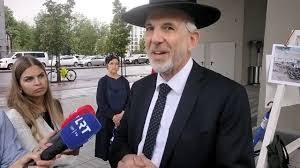 Rabbi Elchonon Baron answers questions from Lithuanian media during a recent Vilnius Jewish Community protest calling for restoration of the 500 year old sacred Jewish burial site in Vilnius.